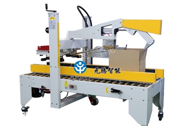 自动折盖封箱机,自动折上盖,上下自动贴上胶带,无需人手作业;采用即贴胶带纸箱封口,封箱效果平整、规范、美观,封口更牢固,配套自动化包装流水线使用将更能体现此机价值。