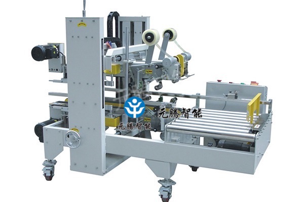 自动角边封箱机是纸箱经前段封箱机中间上下封口后,进入90度转角机,由推箱板推入角边封箱机,光电检测到后机器根据纸箱规格,PLC控制,自动调节机器宽度及高度。自动同时封四角边,封箱速度快,封箱折角无褶皱,纸箱上下四个角边同时自动封口、抚平,无需人手调节机器,简单、方便、快速。适合客户产品要求外包装要求比教高的客户,对于内部产品要求保护严格的厂家。