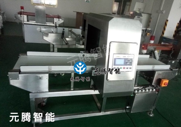 如果包装物本身含有金属或者最后的包装太大无法得到很好的探测灵敏度,这时,就要将金属检测仪安装在包装机之前。