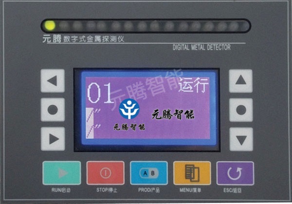 指示灯 从左起,第一个灯为运行指示灯。正常探测时,该灯为绿色。第二个灯为NG指示灯,当探测到金属异物时,该灯为红色。其余灯为等级显示LED,显示金属成份探测等级。