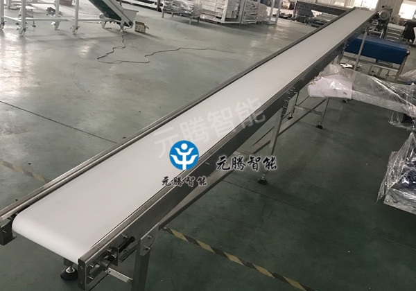 白色食品级爬坡皮带输送机广泛应用于食品饮料行业, 用于输送面包、小吃、薯条、糖果等. 不锈钢带式输送机的优点安全、稳定、结构简单、维护方便、噪音小、能耗低。 技术参数