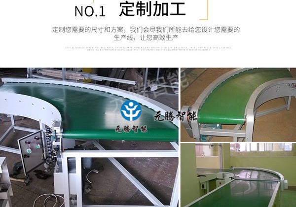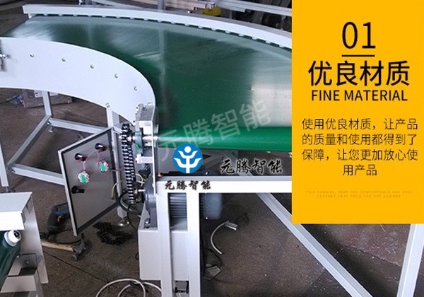 CA88智能转弯皮带机结构形式有90度转弯皮带机、180度转弯皮带机, 能满足各种转弯输送的工艺要求。 转弯皮带机输送带有PVC、PU等多种材质,除用于普通物料的输送外,还可满足耐油、耐腐蚀、防静电等有特殊要求物料的输送。 采用专用的食品级输送带,可满足食品、制药、日用化工等行业的要求。 输送平稳,物料与输送带间没有相对运动,能够避免对输送物的损坏。 与其它输送机相比噪音较小,适合于工作环境要求比较安静的场合。 结构简单、便于维护;能耗较小,使用成本低。